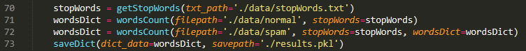 最终结果保存在"fvs_%d_%d.npy"文件内,其中第一个格式符代表正常邮件的数量,第二个格式符代表垃圾邮件的数量。