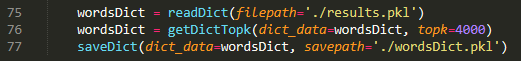 现在的词典里有52113个词,显然太多了,有些词只出现了一两次,后续特征提取的时候一直空占着一个维度显然是不明智的做法。因此,我们只保留词频最高的4000个词作为最终创建的词典: