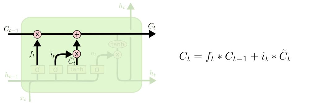 有了遗忘门和传入门,我们就能够更新cell的状态了,即把Ct-1更新为Ct。