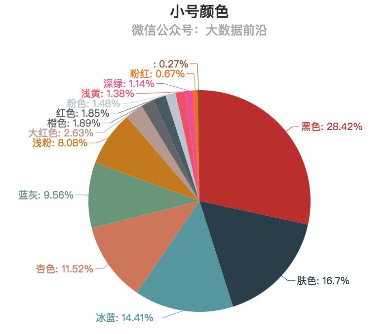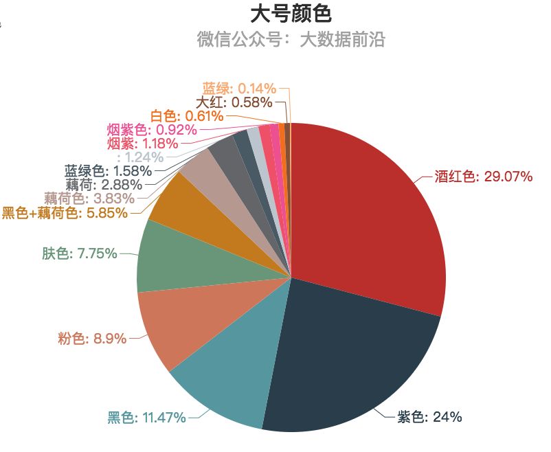 可能是由于具体产品的影响,大号和小号的颜色差别还挺大,大号最受欢迎的颜色是酒红色,其次是紫色,不明觉厉~~