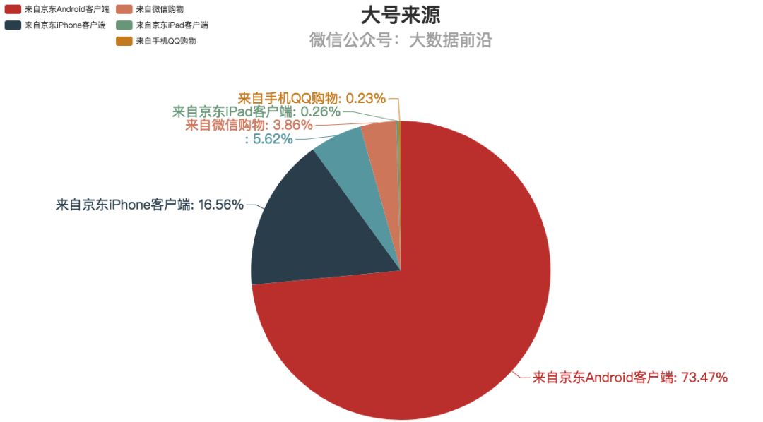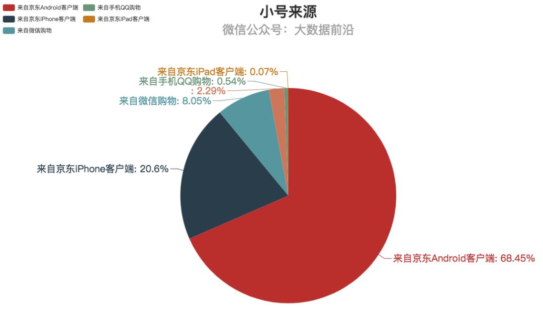 总的来说,还是从京东App购买的用户最多,但也可以看到,有8%的用户是在微信平台上进行交易,这已经是一个不小的数字了。