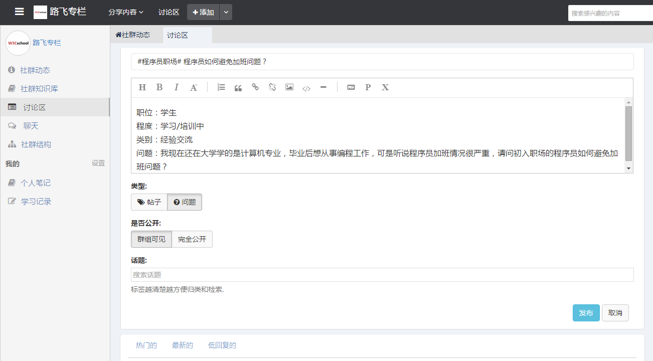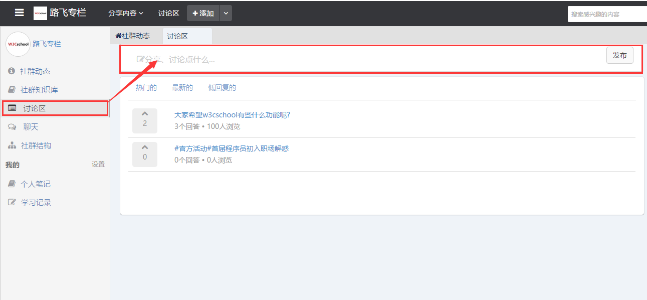1. 首先打开W3Cschool官网(www.w3cschool.cn)、加入校长路飞社群(http://www.w3cschool.cn/group/caoyeshu.html