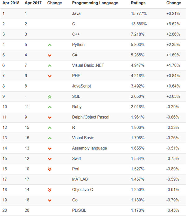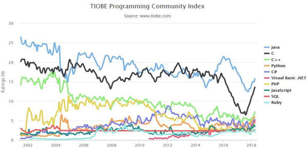 2018编程语言排行榜 Ruby杀回前十