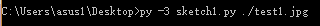 python设置了环境变量之后,在cmd中运行即可。输入python文件名+想要素描或者化成沙画的原图像路径(含图像名)即可。例如下图: