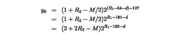 注意这里的1/8其实是凑出来的,具体凑法可以先假设一个小于一的正数a,由于0<r2<1,0<m<1,我们可以通过展开得到r1关于a的一个区间。让a尽量小,使得这个区间范围小于一。根据r1一定是整数的特性,我们可以确定使得误差最小的r1。这里得出r1=190,带入十六进制里面并右移(注意开头有一个表示符号的0)就是0x5f,正好是黑魔法常数的头几位。< p="">