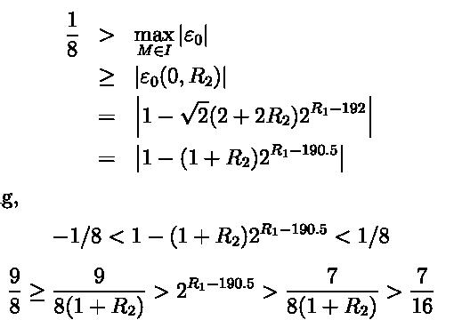 由于初始值一定要是正数,所以我们需要上式一定为正,因为0=<e<=256,所以r1>=128