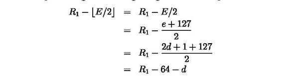 因为我们讨论的E为偶数,也就是末位数一定是0,所以不用考虑他右移后对M的影响,所以两数相减之后的结果是: