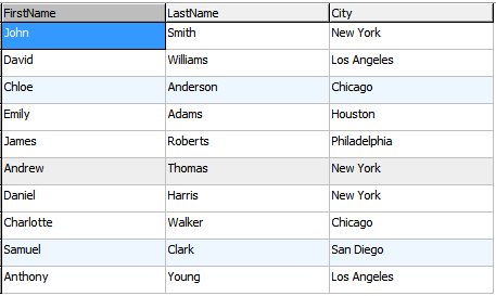 SELECT FirstName, LastName, City