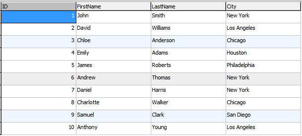 SELECT DISTINCT City FROM customers; 执行输出以下结果,“City” 列重复值已被去除。