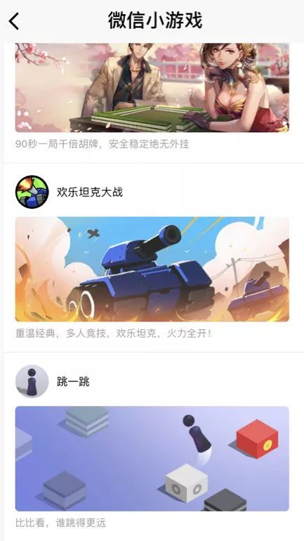 小游戏是小程序的一个类目,即点即玩,无需下载安装,体验轻便,同时可以和微信内的好友一起玩,比如PK、围观等。